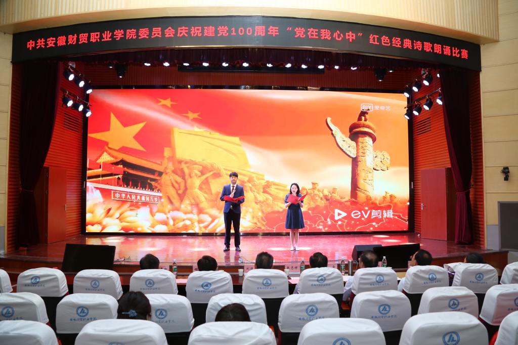 本次比赛围绕“诵读红色经典,致敬光辉百年;传承红色基因,牢记初心使命”主题,全校14个基层党组织共推荐20个节目参加比赛。比赛现场,参赛选手以饱满充沛的感情诵读《忆峥嵘岁月传红色精神》《可爱的中国》《百年约定》《七月的天空》《毛泽东诗词诵读》等红色经典诗歌,选手们用饱含深情、铿锵有力的朗诵声带领着现场观众重温中国共产党百年峥嵘岁月,感受伟大建党精神和革命精神。通过激烈的角逐,最终学生处党支部《火红的七月》、财会金融学院党总支《有一首歌》荣获一等奖,评选出二、三等奖各6个。