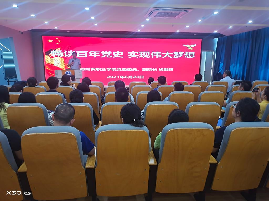 6月23日下午,学校党委委员、副校长胡戴新在智慧导游实训室为学生处党支部、财务处党支部、图书馆党支部、现代教学技术中心党支部、文化创意学院党总支全体党员教师讲授《畅谈百年党史,实现伟大梦想》专题党课。