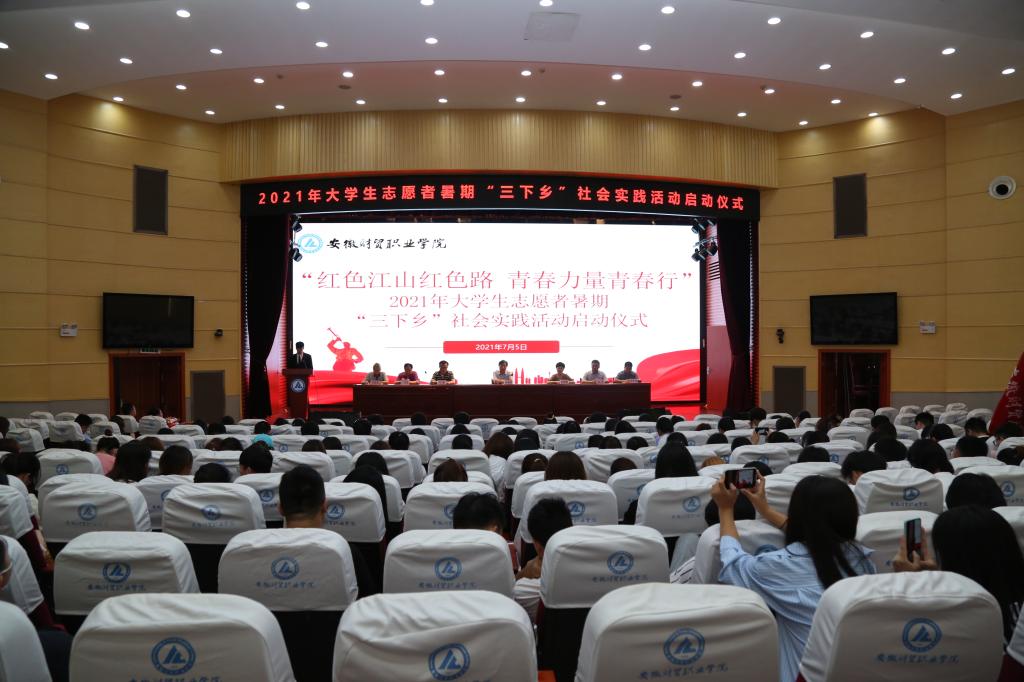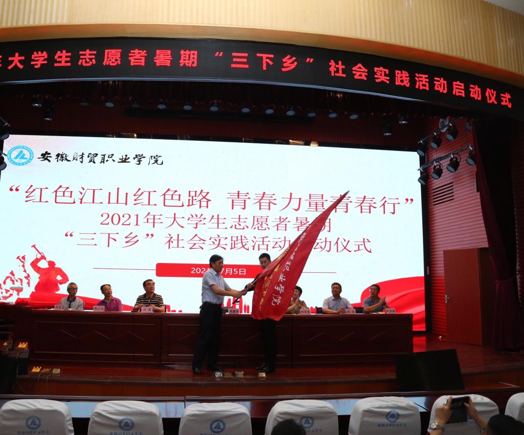 7月5日上午,学校在学术报告厅举行“红色江山红色路 青春力量青春行”2021年大学生暑期“三下乡”社会实践活动启动仪式。学校党委委员、副校长胡戴新出席仪式并为实践服务队授旗。学生处、团委、各院部党总支、团总支相关负责人及重点团队师生代表参加仪式。