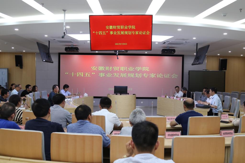 7月8日下午,学校召开“十四五”事业发展规划专家论证会,会议由学校党委副书记、校长刘银国主持,党委委员、副校长胡戴新出席会议,全体中层干部参加会议。蚌埠工商学院党委书记、督导专员郭亮,安徽职业技术学院党委书记李方泽,安徽工商职业学院校长李雪,安徽省职业与成人教育学会会长李兴旺,安徽商贸职业技术学院副校长郑承志及芜湖职业技术学院副校长孙晓雷共6名专家组成专家组就有关内容展开了深入的论证探讨。