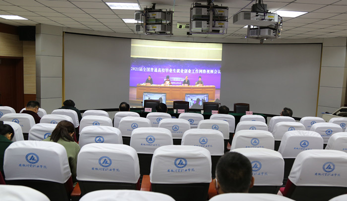 我院分会场设在3D实训室,学院领导张志祥、刘银国、何翔、胡戴新,学生处、教务处、二级院部等单位负责同志参加会议,参加会议的还有各院部2021届毕业班辅导员及相关就业工作人员。