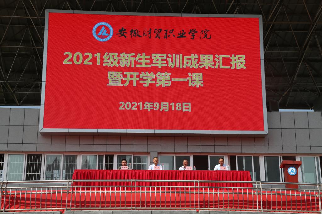 9月18日上午,学校2021级新生军训成果汇报暨开学第一课在田径运动场举行,学校党委书记张志祥,学校党委副书记、校长刘银国,中国人民解放军陆军炮兵防空兵学院少校张洪铭出席活动,学校党委副书记、纪委书记何翔主持活动。