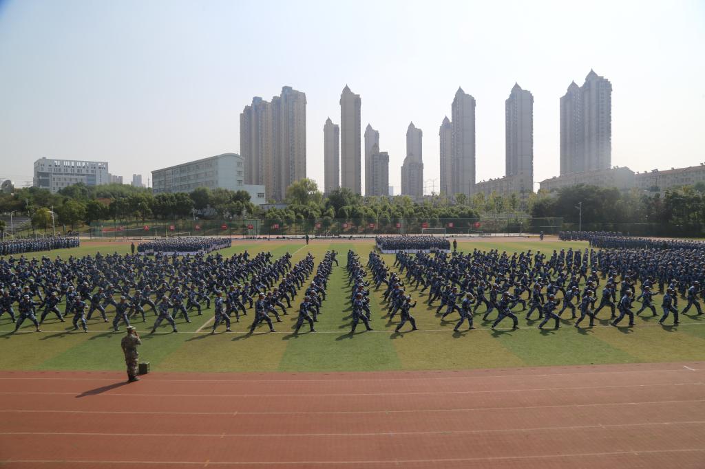 2021级学生军训成果汇报在嘹亮的分列式进行曲中拉开序幕,16个新生代表方阵以挺拔的军姿、整齐的步伐、嘹亮的口号依次进场,他们军容严整、精神抖擞、昂首挺胸、豪情激荡展现了军训以来的训练成果。分列式结束后,各方阵进行了军体拳、韵律操等汇报表演。教官组进行了战术动作演示,将现场气氛推向高潮。在全体师生合唱《没有共产党就没有新中国》歌声中,新生军训成果汇报圆满落幕。
