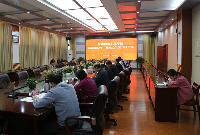 11月3日下午,学院召开制度建设年“废改立”工作推进会,党委书记张志祥,党委委员、副院长胡戴新出席会议,党委副书记、纪委书记何翔主持会议,各职能部门主要负责人参加会议。