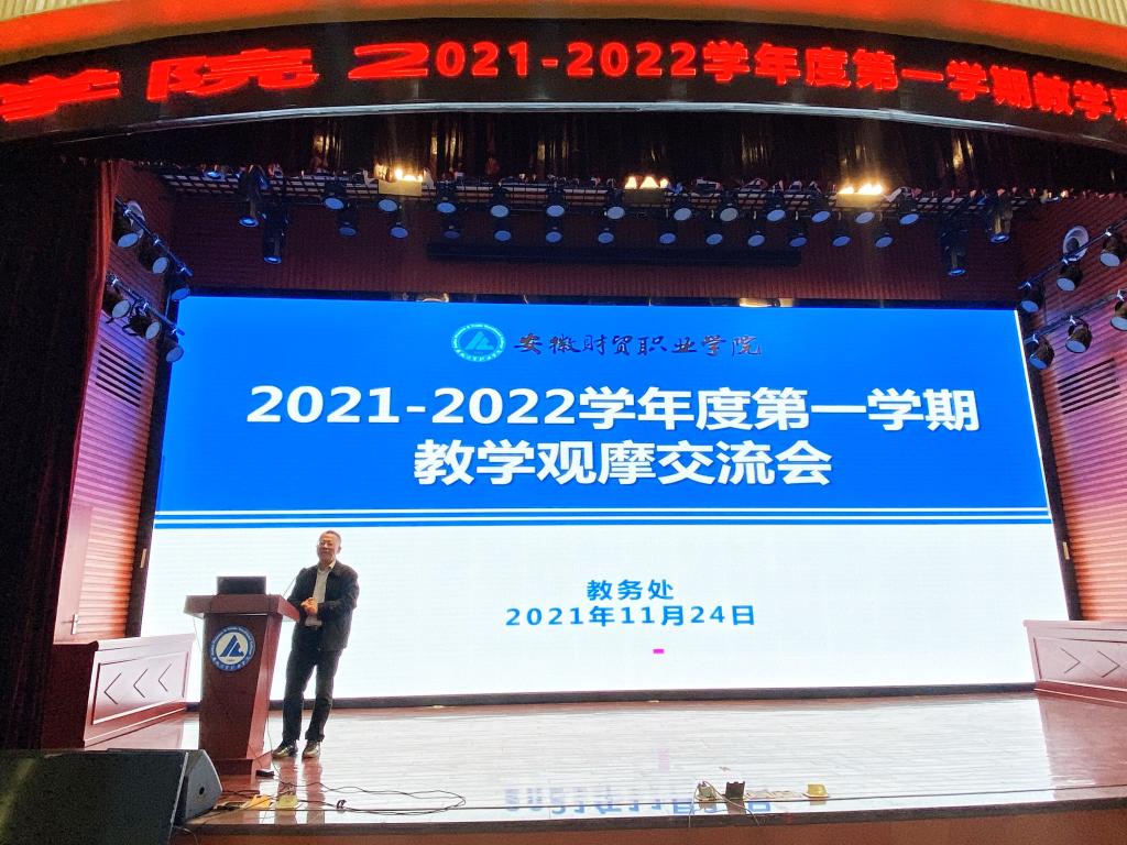 11月24日下午,2021-2022学年度第一学期教学观摩交流会在学术报告厅举行。2021年安徽省高职院校教学能力大赛获奖团队受邀进行了示范教学和相关展示。党委副书记、校长刘银国出席会议,全体专兼职教师参加会议。