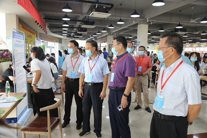 省供销集团党委专职副书记、纪委书记、副总经理汪本胜一行到我校双选会省供销社单位招聘专区指导工作,与企业负责人、学生亲切交流,详细询问招聘及应聘情况。校领导张志祥、刘银国、何翔,胡戴新陪同走访。招生就业处负责同志汇报了2020年毕业生就业的整体情况,重点介绍新冠肺炎疫情发生后,学校立即启动应对预案,及时在官网和官微公布疫情期间线上服务方式。广泛动员和发动毕业生参加“24365校园招聘服务”和省大中专就业指导中心组织的各类网上招聘会。联系企业近2000家,推送招聘岗位超2万个,联合政府部门和公共人才服务机构举办了4场线上双选会,服务基本可覆盖我校全体求职毕业生。