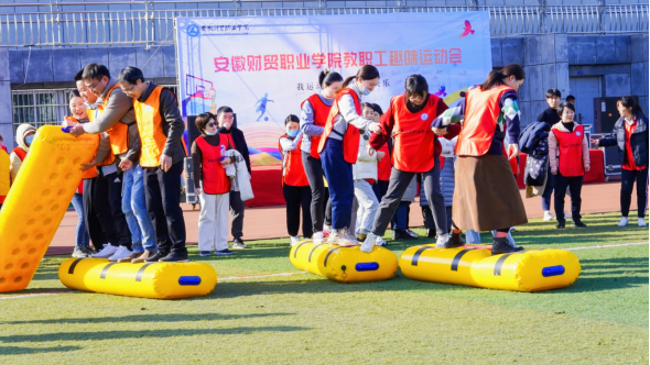 本次运动会共设同舟共济、奋笔疾书、旱地龙舟、众心捧月等四个趣味性项目,每个项目由同一分工会的4名参赛选手组成一个小组出场竞技。随着主教练宣布比赛项目、规则和流程,9支队伍分成四个大组,对应到相应的四个项目区同场竞技。本着发扬“相互学习、加强团结、增进友谊”的比赛精神,各代表队都精神饱满、斗志昂扬,在历时二个小时的比赛过程中,所有参赛队员都保持着活跃、快乐的心情积极参加小组竞技,整个体育场上祥和有序、充满着欢声笑语,充分展示了安财院人在校党委的带领下,乘“十四五”东风,以团结友爱、和谐向上、不畏艰难的精神风貌,再踏新征程,再迈新步伐,再聚新力量。