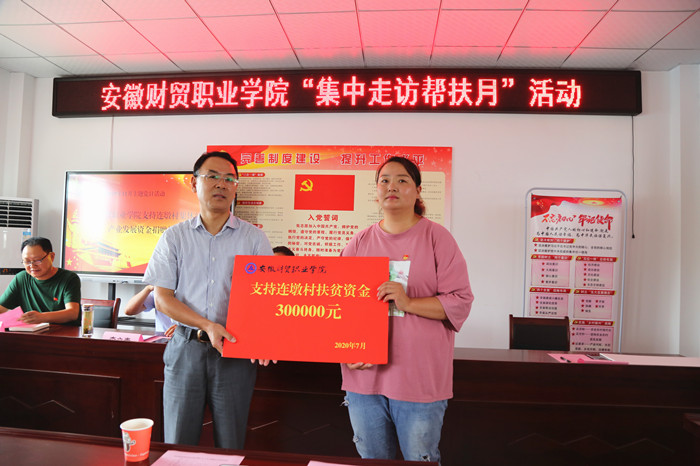 党课宣讲后举行了捐赠仪式,学院投入30万元扶贫资金,用于支持连墩村集体经济产业发展。同时,向连墩村和孙岗镇捐赠价值48万多元的家具、空调等物资,帮助近期因汛情受灾的群众和单位尽快恢复生产生活、开展灾后重建。