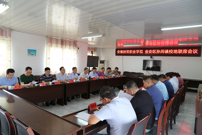 7月26日,学院与金安区孙岗镇校地合作联席会议在孙岗镇召开。学院党委书记张志祥,党委副书记、院长刘银国,党委副书记、纪委书记何翔,党委委员、副院长胡戴新,六安市金安区区委组织部副部长张一功,孙岗镇党委书记杨君及部分领导班子成员出席会议。