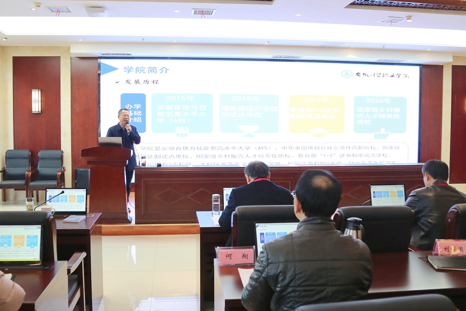 12月21日至24日,受安徽省教育厅、安徽省高职院校教学工作诊断与改进专家委员会委托,在前期网上复核的基础上,以马鞍山师范高等专科学校原校长孙良为组长、安徽机电职业技术学院院长侯大寅为副组长的诊改复核工作专家组一行9人来到我校,对教学工作诊断与改进工作进行现场复核。