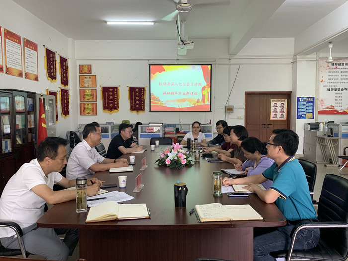 5月28日,校长刘银国率继续教育中心、教务处负责同志到大位会计学院调研指导专业群建设,大位会计学院班子成员及教研室主任参加座谈会,大位会计学院副院长姚云霞主持会议。