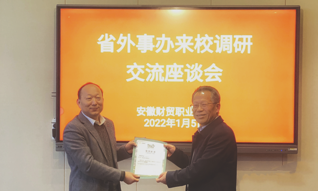 程怀君对我校在国际交流合作工作中取得的成果给予充分肯定,向我校对于外事工作的支持表示感谢,并向学校转交了我校前外籍教师沙赫布兹的荣誉证书。