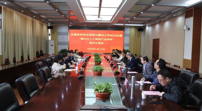 4月14日下午,学校与腾讯云计算有限责任公司校企共建“腾讯云人工智能产业学院”建设交流会在学校行政楼第四会议室顺利召开。校党委书记张志祥、校长刘银国出席会议并讲话。腾讯云计算有限公司腾实学院负责人钱栩磊、高级运营经理高晓舒、高级产品经理张春雨、成都中慧科技有限公司总经理卞继海、杭州中慧启航科技有限公司副总经理李寅、大区经理项露琪,云桂信息学院党总支副书记倪晶晶、副院长姚成及相关教研室主任、专业负责人出席会议,会议由云桂信息学院副院长张成叔主持。