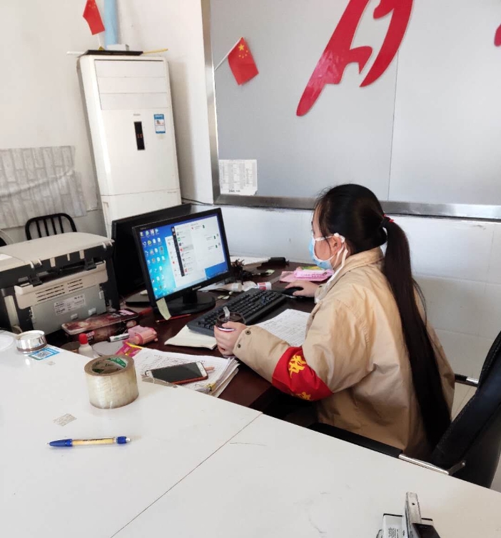 疫情防控期间,她勇敢的走进乡村街头,向村民宣传疫情传播的严重性,号召村民少聚集、戴口罩,积极响应国家号召不出门、不串亲。为了能够全面掌握村里人员的出行情况,她一方面跟随居委会的同志挨家挨户记录各户人员返乡情况及有无武汉等地居住史,一方面参与到村口设置的检测点,记录来往人员出行次数及体温特征,并坚持每天及时将信息录入电脑形成电子档案。疫情稳定后,她又协助村委会帮助外出人员办理通行证、复工证明等材料,并耐心的指导村里的老人开通“安康码”。