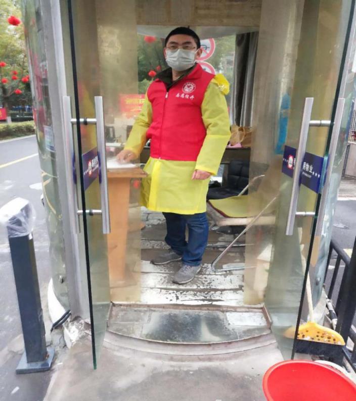 疫情初期,为响应国家和社会的号召,自愿加入合肥市庐阳区逍遥津街道九狮桥社区成为一名抗疫志愿者。在服务期间,每天在主要交通要道、人口密集地张贴宣传通告疫情防控知识,通过音响循环播放疫情防控相关内容,而且,还为每一名行人测量体温,查验人员身份信息,对来访事因做好相应的登记管理。每日对辖区内所有的商户进行巡查,一经发现有私自营业的商户,立即配合相关部门责令商家停业。累计服务时间长达45天。周边的企业和群众看到他们深入一线开展工作的艰辛,深受感动,自发捐助了口罩消毒洗手液和一些食品,他说当收到募捐者捐赠物资的那一刻时,顿时觉得心里暖暖的,再苦再累都是值得的。