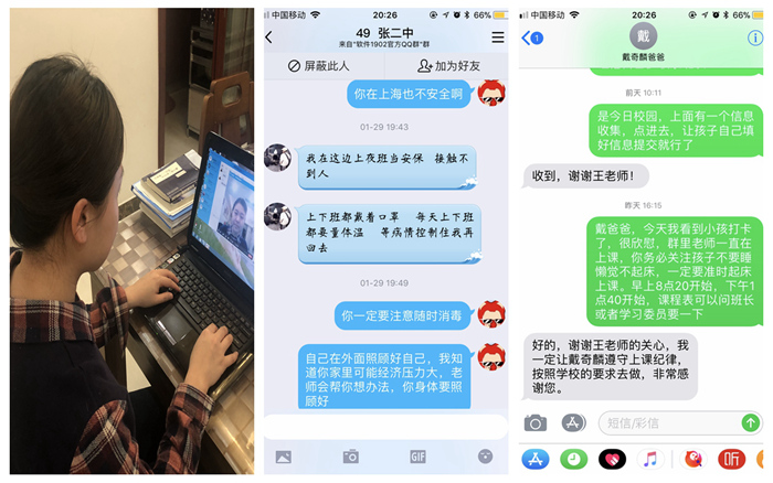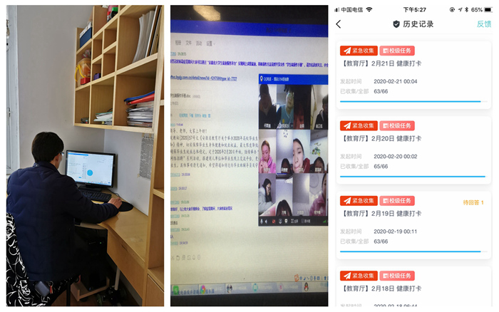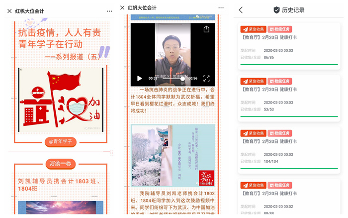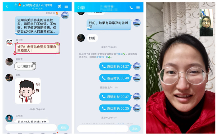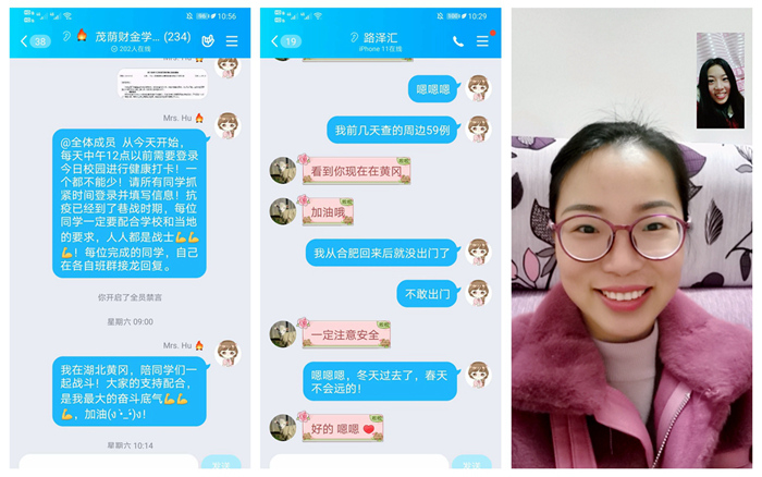 自新冠肺炎疫情发生以来,作为一名辅导员,我时刻牵挂、守护、陪伴着200多名学生平安度过这个特殊时期,手机保持24小时在线,通过班级QQ群、微信群、电话、短信等方式,与同学们线上谈心交流,做好思想教育引导,宣传科学防护措施,开展心理疏导帮扶。全面排查每一位学生的日报信息,实时关注每日健康打卡情况,看到高职1603班一位学生信息采集情况异常,顿时内心无比紧张,第一时间了解情况,得知寒假曾去过武汉,目前在家隔离一切安好,心里的一块石头才终于落地。在抗击疫情大战中,深感肩上责任重大,教育部思政司党支部致全国高校辅导员的一封信,让我更加体会到每一位同仁都在用自己的微薄之力为疫情防控站岗,坚守辅导员岗位职责,关注着每一位学生的身体状况,关心着每一位学生的在线学习,嘘寒问暖、无微不至,每天看到学生回复一切正常,才发现原来简单的字符此时却是那么的让人感动。我们一起守初心共战“疫”,静待春暖花开时!