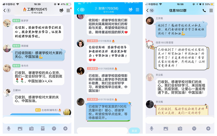 发放流量补助,助力线上学习。为确保疫情防控期间停课不停教、停课不停学,自2月17日学校线上开学以来,全校共有360名教师、开展614门课程线上教学。为保证疫情防控期间线上教学质量效果,帮助解决学生上网课流量不足问题,确保学业不掉线、课程不掉队,经学校党委研究,及时面向全校学生发放线上学习网络流量专项补助,每人100元,共计13151人、资助131.51万元,解决了同学们在线学习后顾之忧,能够让同学们在家安心进行线上学习,同学们纷纷表示,疫情无情,学校有爱,在线上教学特殊时期,学校发放的学习网络流量补助真是暖心助学,帮助我们及时解决线上教学网络拥堵和流量问题,倍感学校的人文关怀和浓浓情意,更加坚定宅家上好网络课程的信心,一定不辜负学校老师们的期望,认真完成线上学习任务,提高网络学习质量效果,以更好的成绩回报学校、社会、国家。