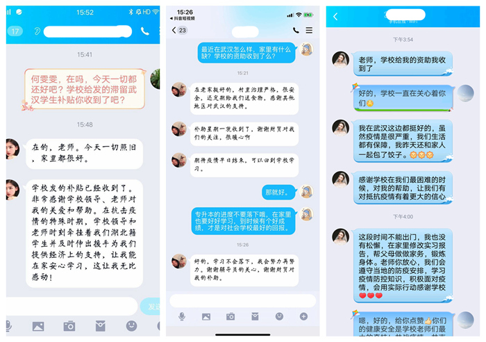全面精准摸排,建立资助台账。疫情防控期间,按照学校通知要求,二级院部、辅导员们通过电话、短信、微信、QQ等方式,摸排问题,解答疑问,做到线连线、键对键、心贴心,全面摸排受疫情影响的家庭经济困难学生健康状况和生活情况,重点聚焦疫情重点地区,重点关注特困学生群体。学校建立疫情防控特殊时期困难学生资助台账,实时动态掌握因疫情导致的家庭经济困难学生基本情况,及时做好资助对象认定信息库的动态更新,给予学生全方位的关怀和支持,确保不让疫情影响学生的正常学习生活。