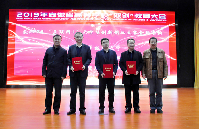 会上,安徽大学、安徽财贸职业学院等18所高校通过视频进行了风采展示;中国科学技术大学、芜湖职业技术学院等8所高校代表作了典型经验介绍;会议对今年在全国“互联网+大学生创新创业大赛”、全省职业院校技能大赛、全国职业院校技能大赛中表现优异的高校进行了表彰。我校2019年在各类赛事中均获得历史最佳战绩:全国职业院校技能大赛获得3金2银1铜;全国“互联网+大学生创新创业大赛”获得1金1银2铜;全国职业院校技能大赛教师教学能力比赛获得1金1银。因此,获得全省职业院校技能大赛“优秀组织奖”、全国职业院校技能大赛先进单位、全国“互联网+大学生创新创业大赛”先进单位,刘银国代表学校接受省教育厅表彰。