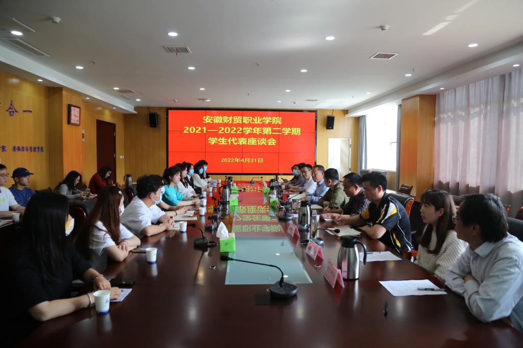 4月21日,学校在行政楼204会议室召开学生代表座谈会,学校党委副书记、校长刘银国出席会议,办公室、教务处、学生处、团委、总务处及二级院部相关负责人和各二级院部13名学生代表参会。