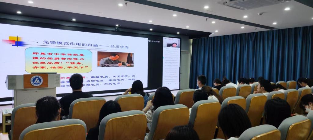 胡戴新从先锋模范作用的内涵、先锋模范作用的途径、坚定理想信念、勇担时代使命四个方面,全面阐释了共产党员先锋模范作用的内涵表现为品质优秀、能力突出、行为模范。他强调,同学们要做到有道德、有理想,发挥学生党员高素质的先锋模范作用;要增强党员意识、汲取榜样力量,发挥学生党员高品质的先锋模范作用;要勤奋学习、志存高远,发挥学生党员品学兼优的先锋模范作用;要理论联系实际、注重学以致用,发挥大学生党员高能力的先锋模范作用。