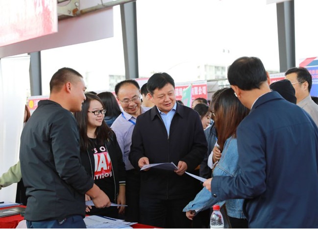 省供销社和省人社厅领导先后莅临我校双选会现场指导工作。省供销社党组成员、理事会副主任魏邦余,人事教育处处长汪本胜,省人社厅就业促进和失业保险处处长唐晓峰、省人才服务中心主任吴传华、省大中专就业指导中心部长王素苗一行现场走访各用人单位展台,并与招聘人员和应聘学生进行了亲切的交流。