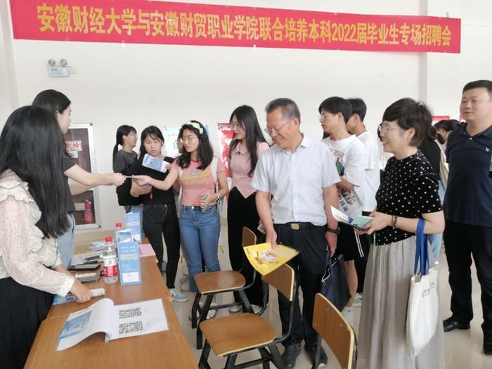 6月1日,学校在蜀山校区举办安徽财经大学与安徽财贸职业学院联合培养本科2022届毕业生财经类校园专场招聘会。学校党委副书记、校长刘银国出席活动。