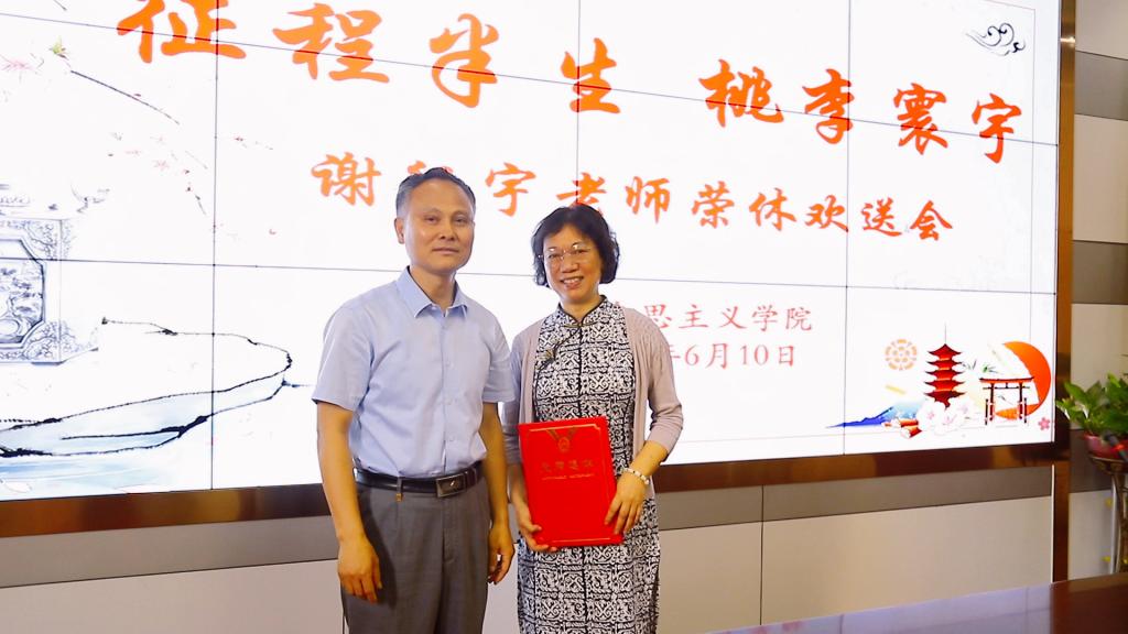 6月10日下午,马克思主义学院举办谢征宇老师荣休欢送会,学校党委书记张志祥,党委副书记、副校长何翔出席会议,工会、监察审计处负责人,9505班校友代表,马克思主义学院全体教职工参加会议。
