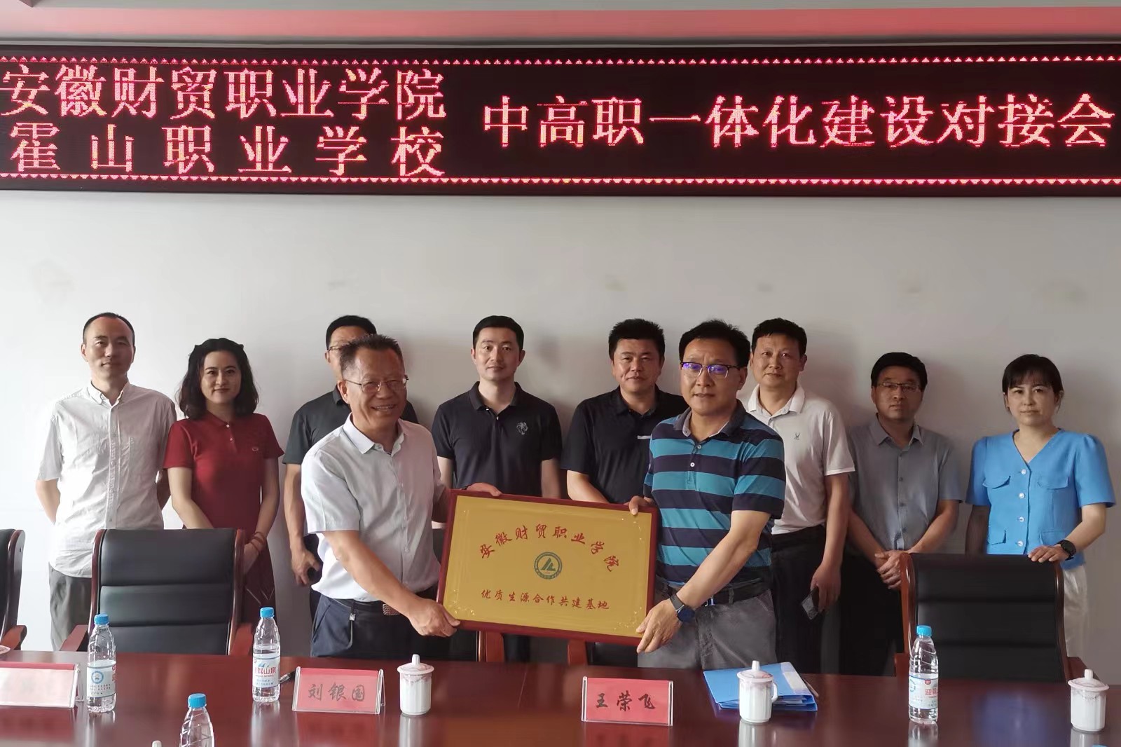 双方共同签订了优质生源基地合作共建意向书。刘银国代表学校向霍山职业学校授予“安徽财贸职业学院优质生源合作共建基地”铜牌,为推进两校中高职一体化建设建立了良好开端。(供稿:陈伟)