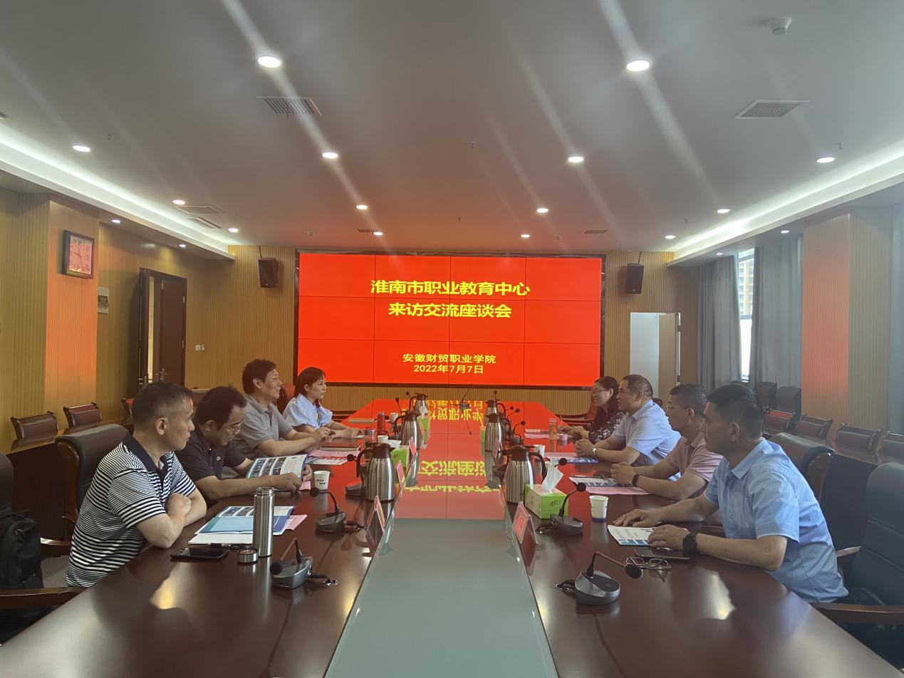 7月7日上午,淮南市职业教育中心党委委员、纪委书记廖仲达率有关人员到校交流中高职合作培养工作。学校党委委员、副校长胡戴新,学生处、财会金融学院、经济贸易学院相关负责人参加座谈。