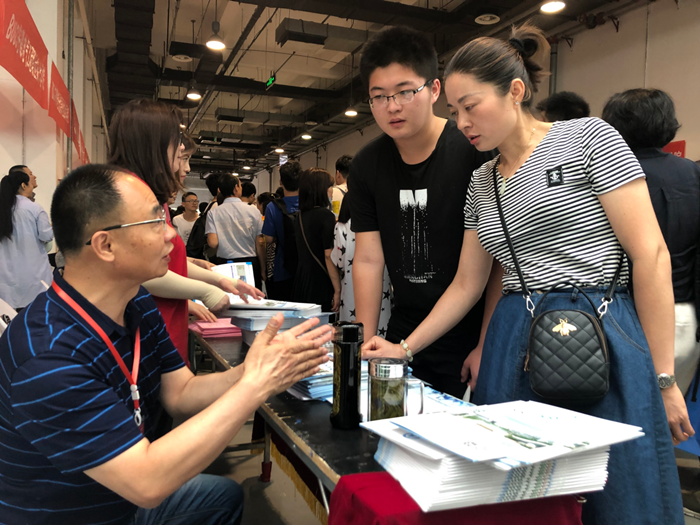 似火的骄阳也未能阻挡咨询会现场考生与家长的热情,我校展位位置显著,展位前更是人头攒动,前来咨询的家长与考生络绎不绝,学校领导以饱满的热情向考生分发招生宣传材料并认真、细致地介绍了今年的招生政策并解答各种咨询问题。详细介绍了学校的基本情况与特色专业,并对考生最关心的如何科学填报院校及专业志愿进行了现场指导,圆满完成此招生咨询工作。