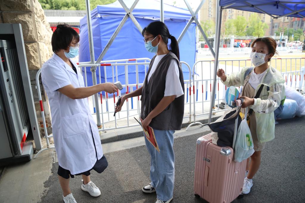 报到现场,新生经过体温检测、核验48小时核酸检测阴性证明、安康码和行程码等流程后进入校园。千余名在校生志愿者引导新生进行核酸检测,提供点对点周到服务,帮助新生搬运行李,热情介绍学校情况。各院部班级辅导员和专任教师实时为新生提供学习和生活指导,温暖的话语,贴心的服务,让新生深切感受到来自学校的温暖关怀。
