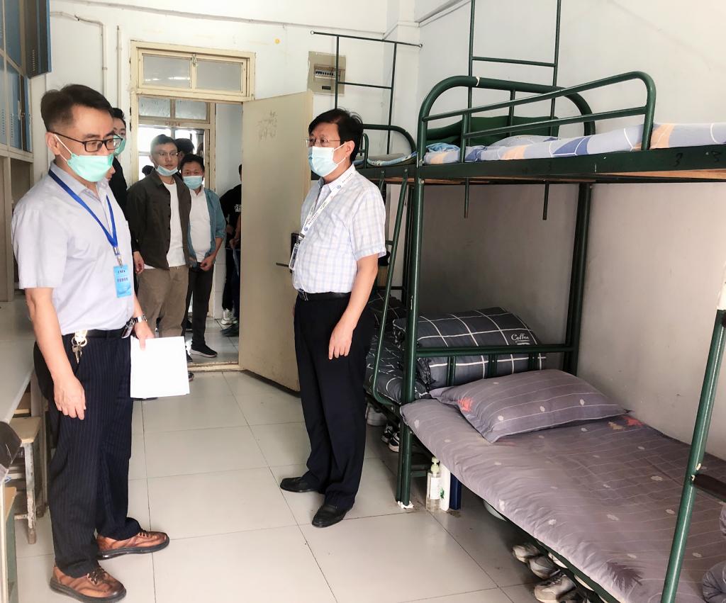 检查过程中,胡戴新对同学们宿舍适应生活表示关心,并叮嘱同学们在新冠肺炎疫情防控期间要积极贯彻落实疫情防控政策,配合学校疫情常态化防控管理,做好个人防护,遵守宿舍管理规定、保持宿舍卫生干净整洁,为筑牢校园的疫情防控安全防线贡献自己的一份力量。