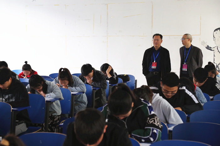 暮春的天气阳光灿烂,考生们早早就等候在考场外准备参加考试。学院领导在测试期间,深入考场和周边环境进行了巡视。开考后,考场里秩序井然,考生们认真答题,监考老师和巡考人员严把考场纪律。考场外相关职能部门工作人员、各二级学院咨询老师也一丝不苟地坚守在各自的工作岗位,更是随处可见家长们翘首以盼的身影。