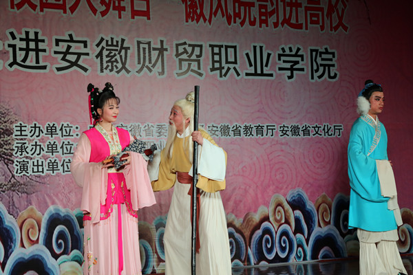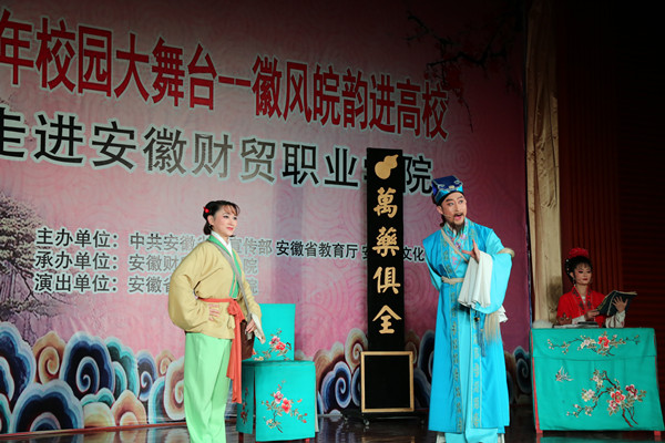 11月14日,由中共安徽省委宣传部、安徽省教育厅以及安徽省文化厅联合主办,安徽财贸职业学院、安徽省黄梅戏剧院承办的2018徽风皖韵进高校安徽财贸职业学院专场演出在报告厅举行,校长刘银国,副校长罗虹出席并观看演出。