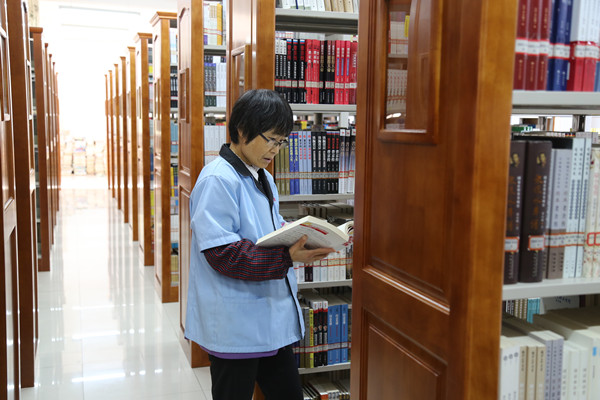 “当时知道到学校的图书馆来保洁,我高兴坏了,想着和图书馆的老师们说说,能不能让我也进去看看书”。谈到两年前刚来到学校做保洁阿姨的时候,徐玉华还是难掩一股高兴的情绪,“学校的老师特别好,特别是图书馆的老师们,每次都对我特别热情。”徐玉华阿姨主要负责图书馆二楼、三楼和四楼的保洁工作,就这样,她渐渐被图书馆的老师和同学们认识了,二楼、三楼、四楼的书库就成了她工作之余经常光顾的地方。