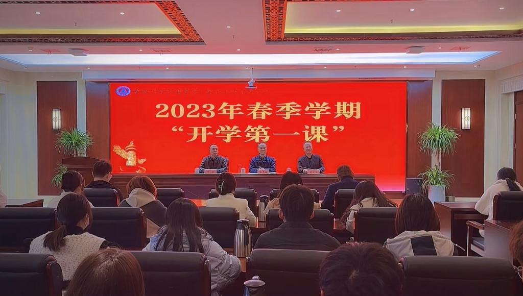 2月21日下午,党委书记张志祥面向全体师生讲授“开学第一课”。党委副书记、校长刘银国主持,党委副书记、副校长何翔出席。