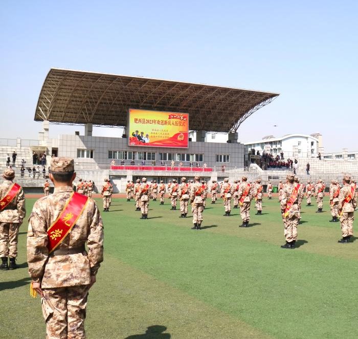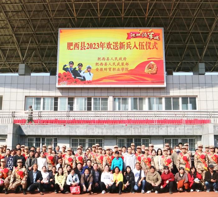 为进一步营造“一人参军、全家光荣、全社会尊崇”的浓厚氛围,激发军人军属的荣誉感、自豪感,3月15日上午,肥西县在我校隆重举办2023年上半年入伍新兵欢送大会。学校党委委员、副校长胡戴新,副县长、县公安局长孙民,军地有关领导、县征兵工作领导小组部分成员单位、各级征兵工作人员、全体新兵及家长等,共计700余人参加大会。