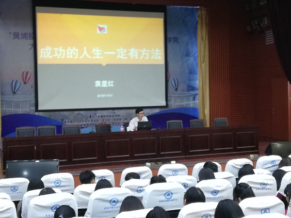 袁星红以青年学生成才过程的“忙-茫-盲”这个生活哲理问题为切入点,结合“成功的九大思维模式”和“大学生的人生蓝图设计”,从青年学生成才的动机、特质和成才途径等方面,援引大量生动现实的例子和数据为同学们全面剖析了“成功的人生一定有方法”这一问题。袁星红用生动而朴实的语言讲述了自己的求学、为事业奋斗的成长经历,并用真实感悟与青年大学生无私的畅谈与分享,还鼓励同学们心中要有梦想,要端正成才动机,培养自身韧性,积极参与实践。