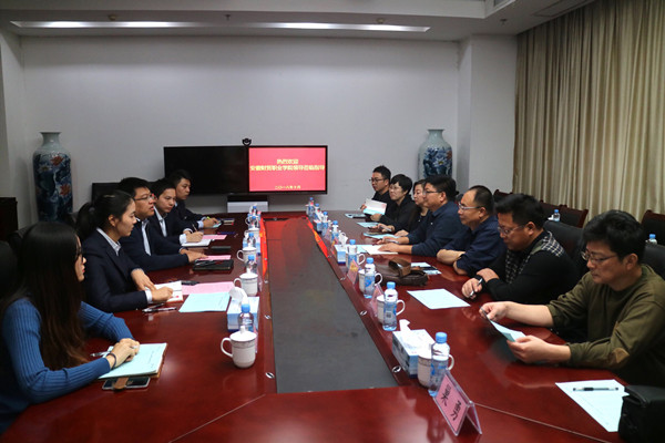 九江银行合肥分行行长谢海洋对吴晓光一行表示热烈的欢迎,会上,谢海洋介绍了九江银行的发展历程、合肥分行的建设、员工培养模式以及校园招聘等情况,并重点介绍了2018届毕业生张琦凡和陆晨在公司里的成长情况,其中张琦凡已经在仅仅数月中由柜员升任客户经理。谢海洋高度评价了我校毕业生的培养质量,并表示要进一步加强与我校的合作,让更多优秀的毕业生加入到公司里面来。