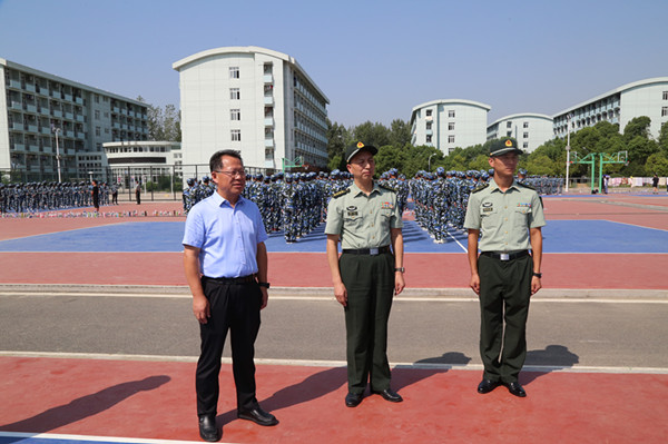 9月5日上午,中国人民解放军陆军炮兵防空兵学院副院长杨平一行莅临我校检查指导学生军训工作。校长刘银国、校长助理吴晓光等热情接待,和承训部队领导进行了座谈交流,并实地考察了军训现场,走访慰问了军训官兵。