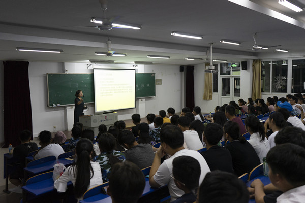 9月11日和9月12日晚,2018级新生心理健康教育讲座分别在6102、6103、6202、6302教室举行。讲座由汤亦瑾、李杉杉、李林育、刘凯、岳吉方等老师主讲,全体新生寝室长聆听了讲座,本次讲座由各学院心理健康老师负责,主讲人从多个角度并结合自身工作经历,引导同学们尽快适应大学新环境,融入大学新生活。并通过生动形象的案例告诉同学们,作为一名寝室长,应当如何去处理好寝室成员之间的关系,当寝室成员出现影响他人的行为和举动时,如何求同存异,学会用婉转的方法处理人际交往中问题。汤亦瑾老师还就如何判别心理健康问题和引导学生进行心理咨询等方面内容,给同学们做了生动的示范讲解。