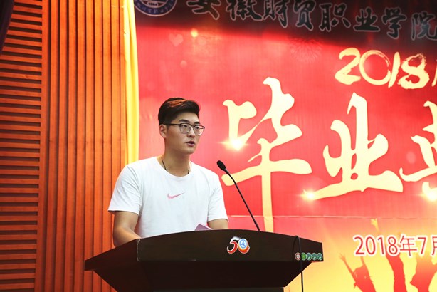 茂荫财金学院投资1502班丁晋东同学代表全体毕业生发言,深情回顾三年来在学院学习生活的情景,总结自己三年来专业技能和综合素养的成长历程,并向辛勤培育、帮助自己的母校、师长和同窗表达感恩与祝福之情。