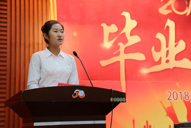 教师代表大位会计学院院长姚云霞用真诚感人的言语与同学们一起回忆了三年校园生活的情景,表达了对学子们的深深不舍之情,并殷殷嘱托即将踏入社会的毕业学子工作再忙也要注意身体,梦想再大也要脚踏实地,磨炼再多也要不忘初心,入世再深也要常怀感恩。