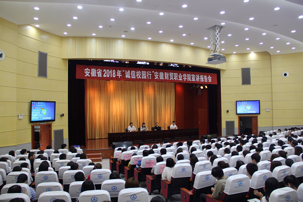 5月31日下午,由安徽省教育厅、中国人民银行合肥中心支行、国家开发银行安徽省分行和安徽省农村信用社联合社共同开展的2018年“诚信校园行”第七场宣讲活动在图书馆学术报告厅举行。中国人民银行合肥中心支行、国家开发银行安徽省分行、安徽省农村信用社联合社有关工作人员作宣讲报告。我校和安徽大学、安徽三联学院、合肥财经职业学院、安徽绿海商务学院、合肥信息技术职业学院获得生源地信用助学贷款学生和辅导员约370人参加了此次活动。宾虹艺术学院党总支副书记张伟主持报告会。