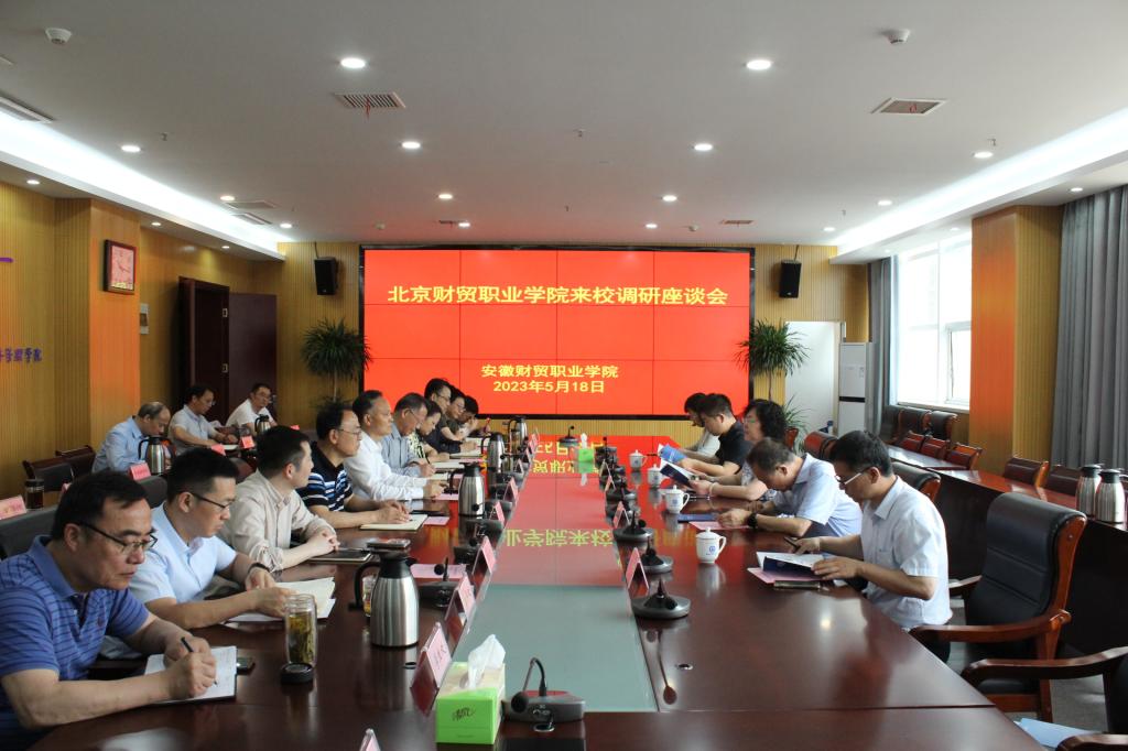 5月18日上午,北京财贸职业学院党委副书记、校长杨宜,党委常委、副校长周明生等一行来校调研交流。学校领导张志祥、刘银国、何翔、罗虹出席座谈会。