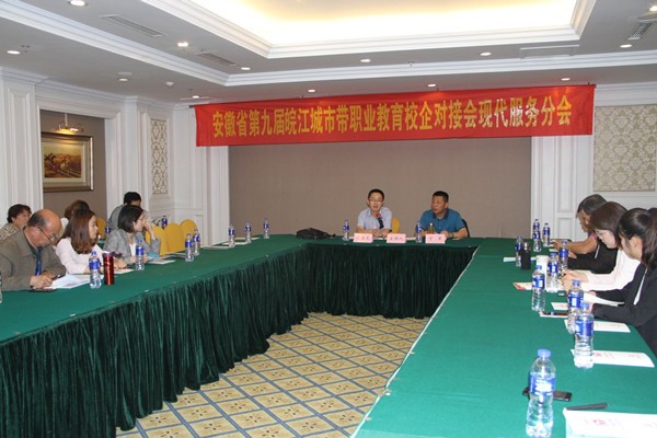 对接会期间,与会代表实地考察了芜湖部分企业和学校,并分组参加装备制造类、交通运输类、财经商贸类、现代服务类等4个校企对接交流活动,王海龙应邀与芜湖高级职业技术学校副校长丁军共同主持了现代服务类校企对接交流论坛,并代表学校作了校企合作经验交流发言。