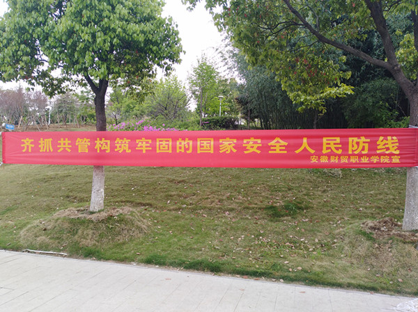 今年宣传教育日活动的主题是“开拓新时代国家安全工作新局面”。4月13日,保卫处在学校食堂、校园主要道路、学生公寓悬挂国家安全教育横幅,利用校园网络、平安校园QQ群、图书信息中心、学生公寓、办公楼的LED屏幕循环播放系列国家安全警示标语,集中开展“4·15”国家安全教育日宣传活动,做到安全教育入心、安全意识入脑,在广大师生中营造了浓厚的国家安全氛围。