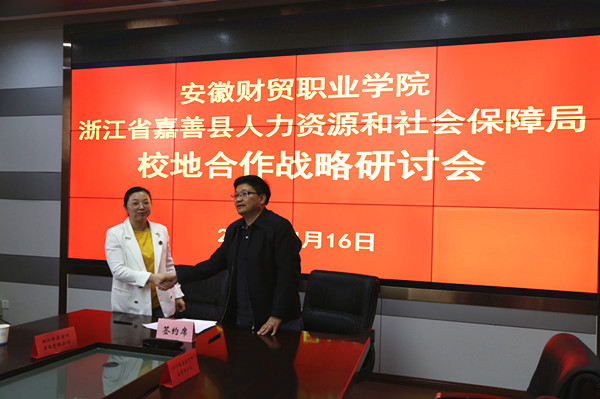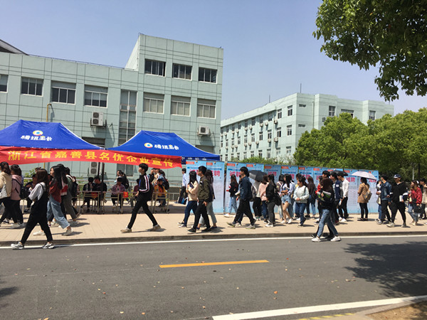 会后,吴晓光和曹燕女士分别代表校地双方签订了合作协议,并于4月17日上午举办浙江省嘉善县名优企业宣传活动。此次校地合作,为学院学生们引进了优质的资源,提供了更多的工作岗位,推动我校大学生就业服务工作再上新台阶。