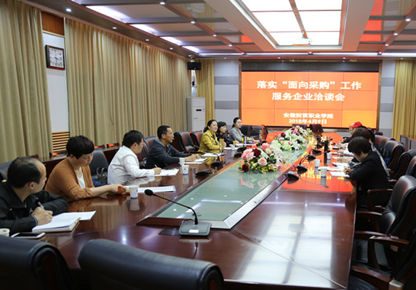 4月9日,学校召开“面向采购”工作对接会,深入落实“面向采购”工作,副校长罗虹出席会议,学校“面向采购”工作领导小组相关成员,在校经营服务的三家餐饮企业负责人及食堂经理,阜阳商厦菜递信息技术有限公司总经理管国联参加会议,会议由总务处副处长何步新主持。